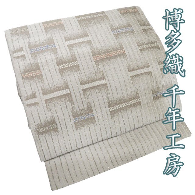 - 特選 名古屋帯 なごや帯 未使用 正絹 仕立て上がり 博多織 名門 岡野 千年工房 ラベル付き 亜麻色 油色 多色 きもの北條 A1116-14