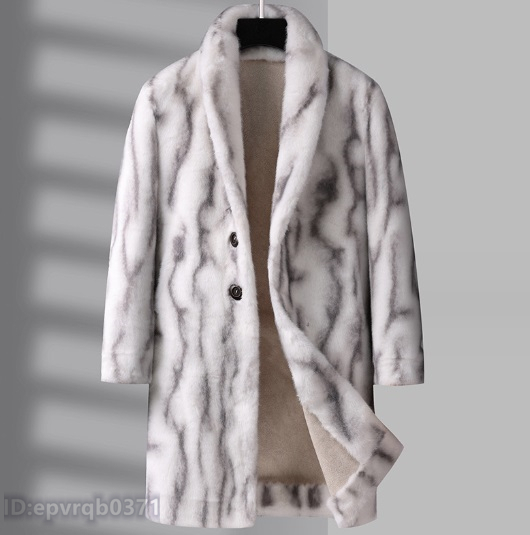 > ファーコート 新品上質 メンズ ロングコート 厚手 柄物 毛皮 フェイクファー 紳士 両面着 秋冬 アウター サイズ選択可 白/3XLサイズ