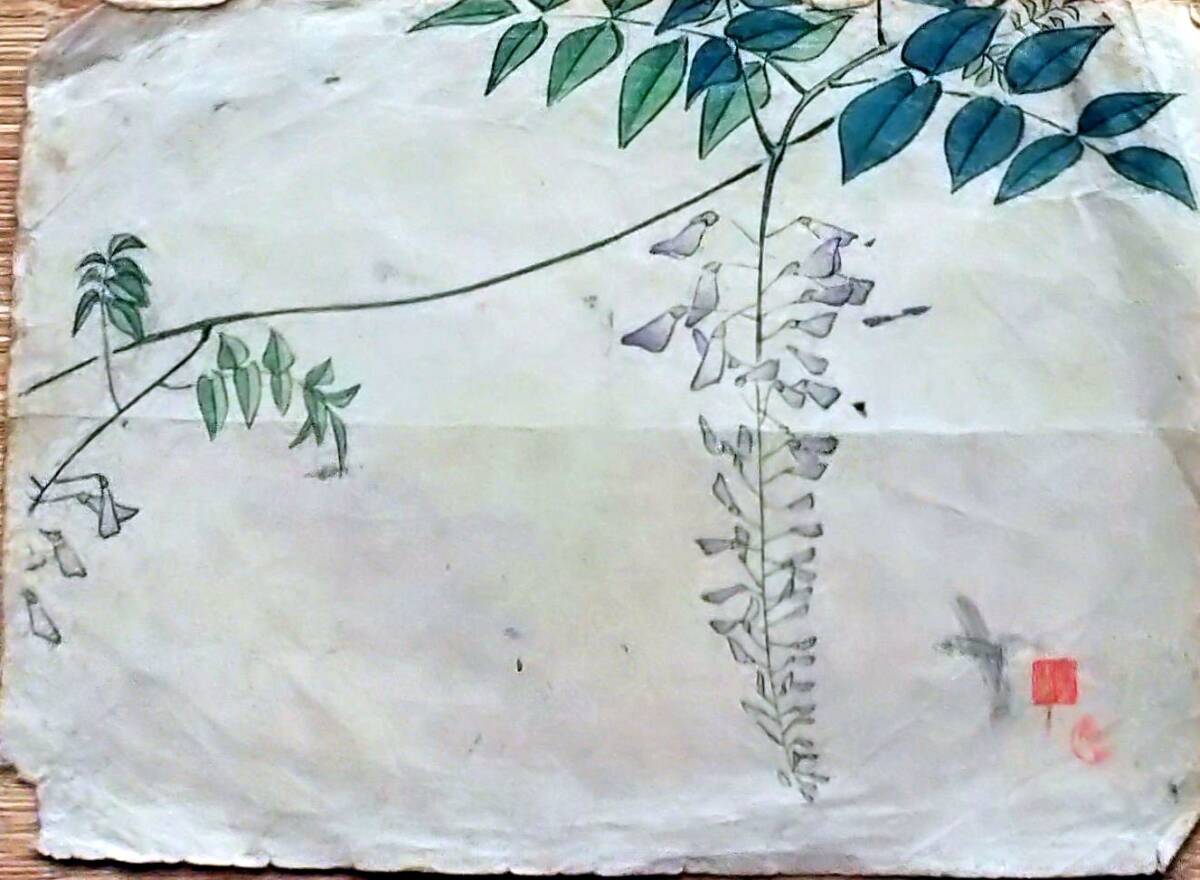 - f24112250〇彩色木版画 藤の花 大正時代〇和本古書古文書