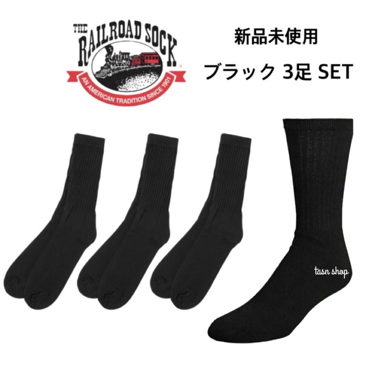 - 【レイルロードソック】新品未使用 クルーソックス 無地 米国製 ブラック 黒 3足セット THE RAILROAD SOCK rs6070 Made in USA