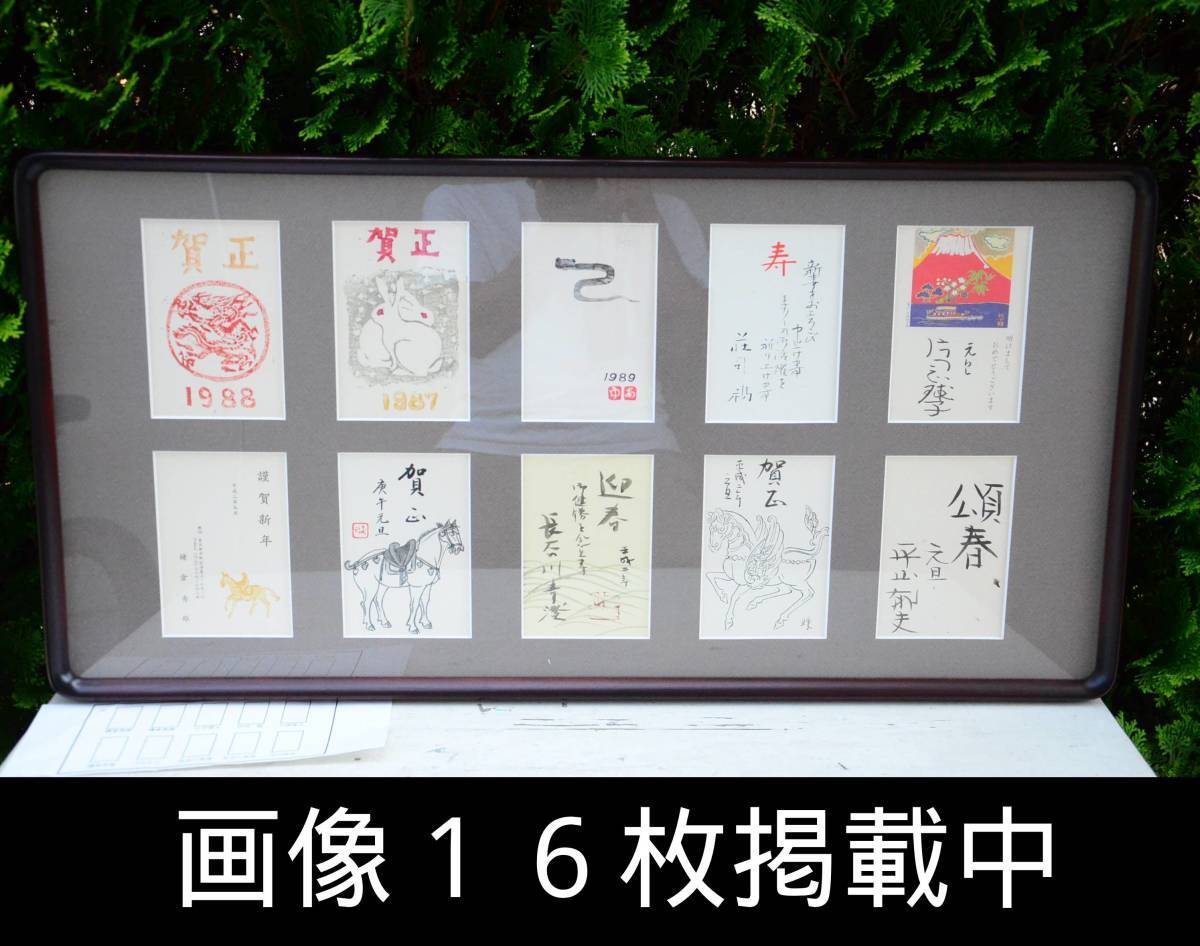 - 年賀状 後藤志郎宛 平山郁夫 片岡球子 荘司福 長谷川青澄 山中雪人 入江正巳 鎌倉秀雄 額装 41cm×81cm 希少 本物