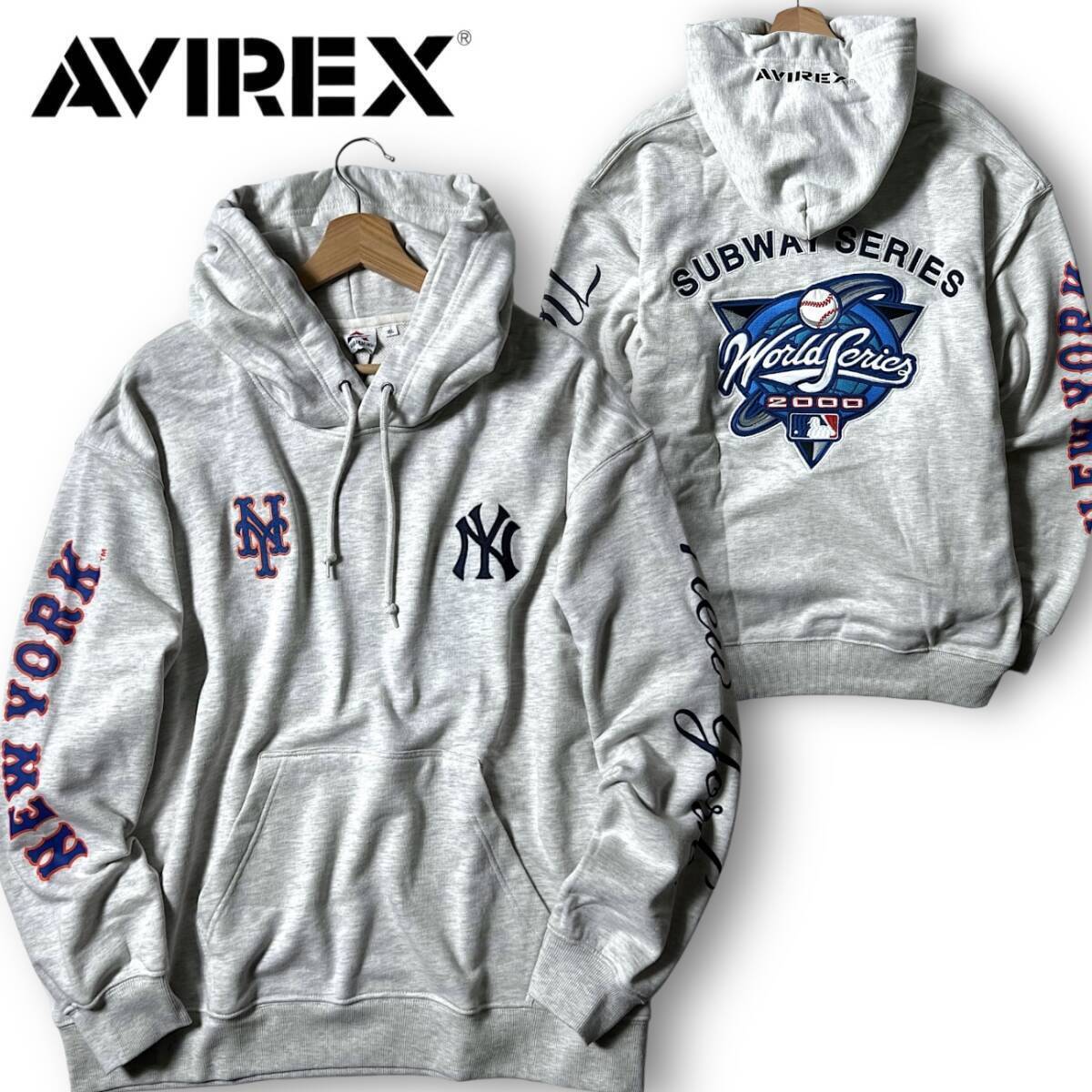 > 新品 AVIREX × MLB アヴィレックス 定価1.5万 刺繍×ワッペン スウェット パーカー プルオーバー 3231011 M ヤンキース×メッツ ◆B4817