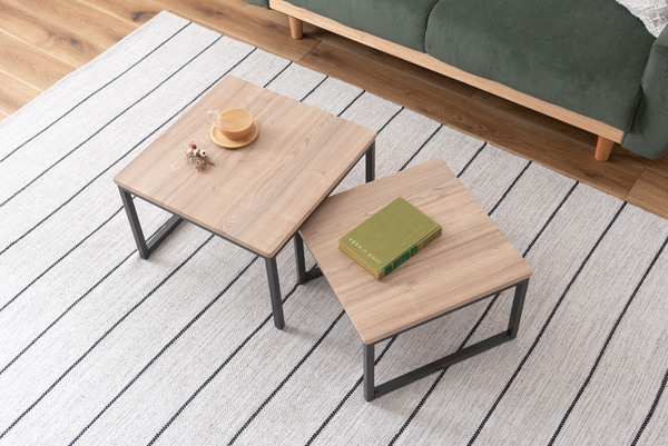 > ネストテーブル テーブル 机 ダブル 正方形 リビングテーブル ローテーブル センターテーブル ソファテーブル コンパクト 木目