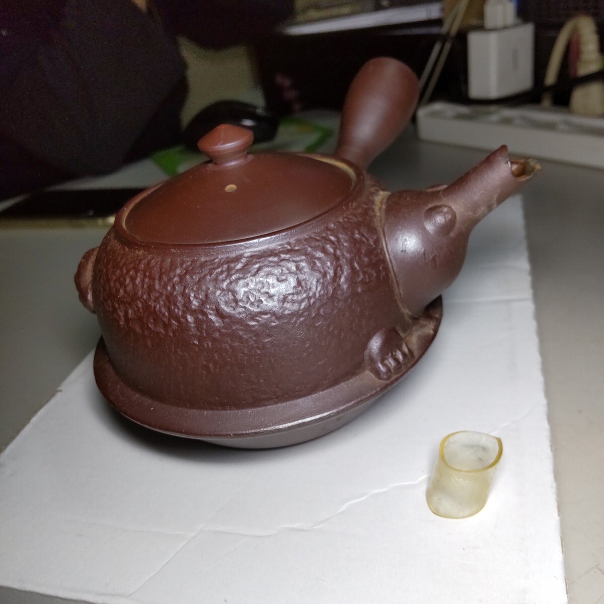 - 【雑貨】 たぬき急須 伝統工芸 急須 土瓶 黒泥焼? 和食器 食器 煎茶道具 茶道具 茶器 陶器 横手急須