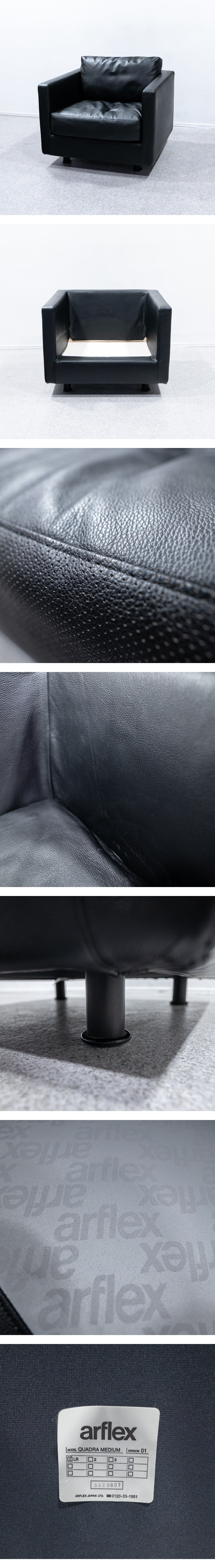 > 【中古品】arflex アルフレックス QUADRA クアドラ 1人掛け 応接 ソファ レザー ブラック【7】