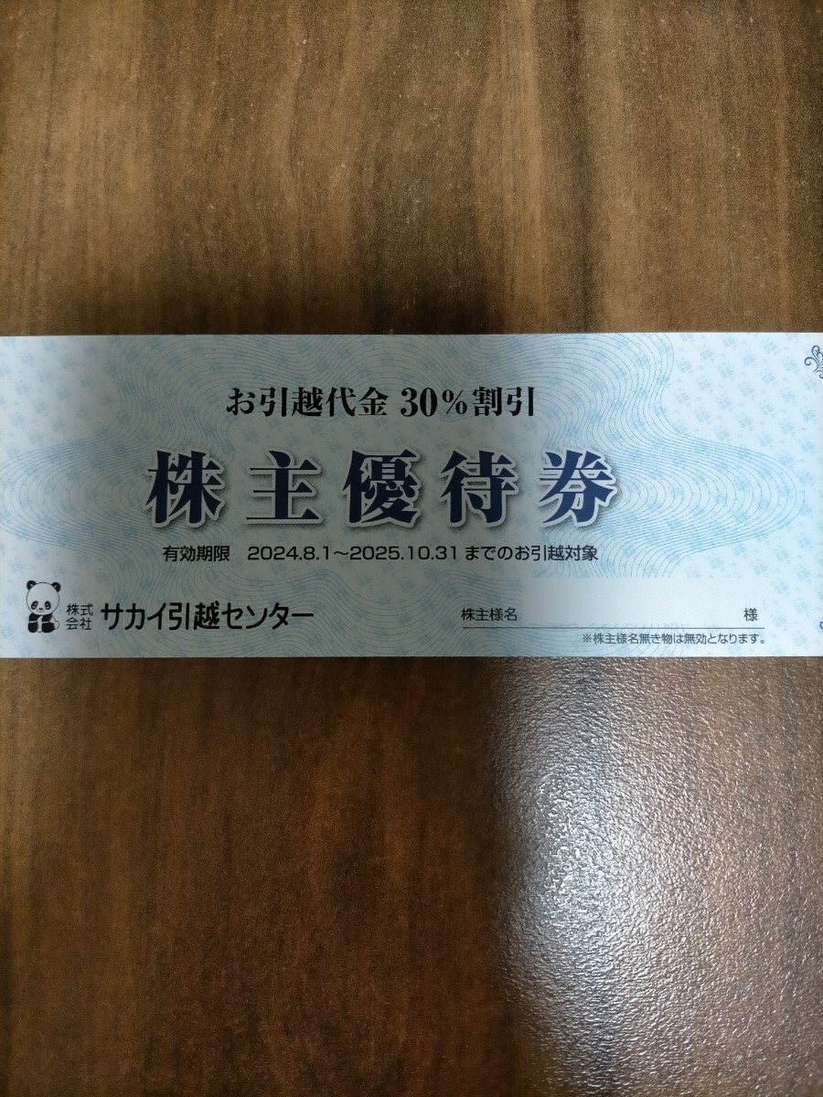 - サカイ引越センターお引越代金30%割引 株主優待券1枚 有効期限2025/10/31