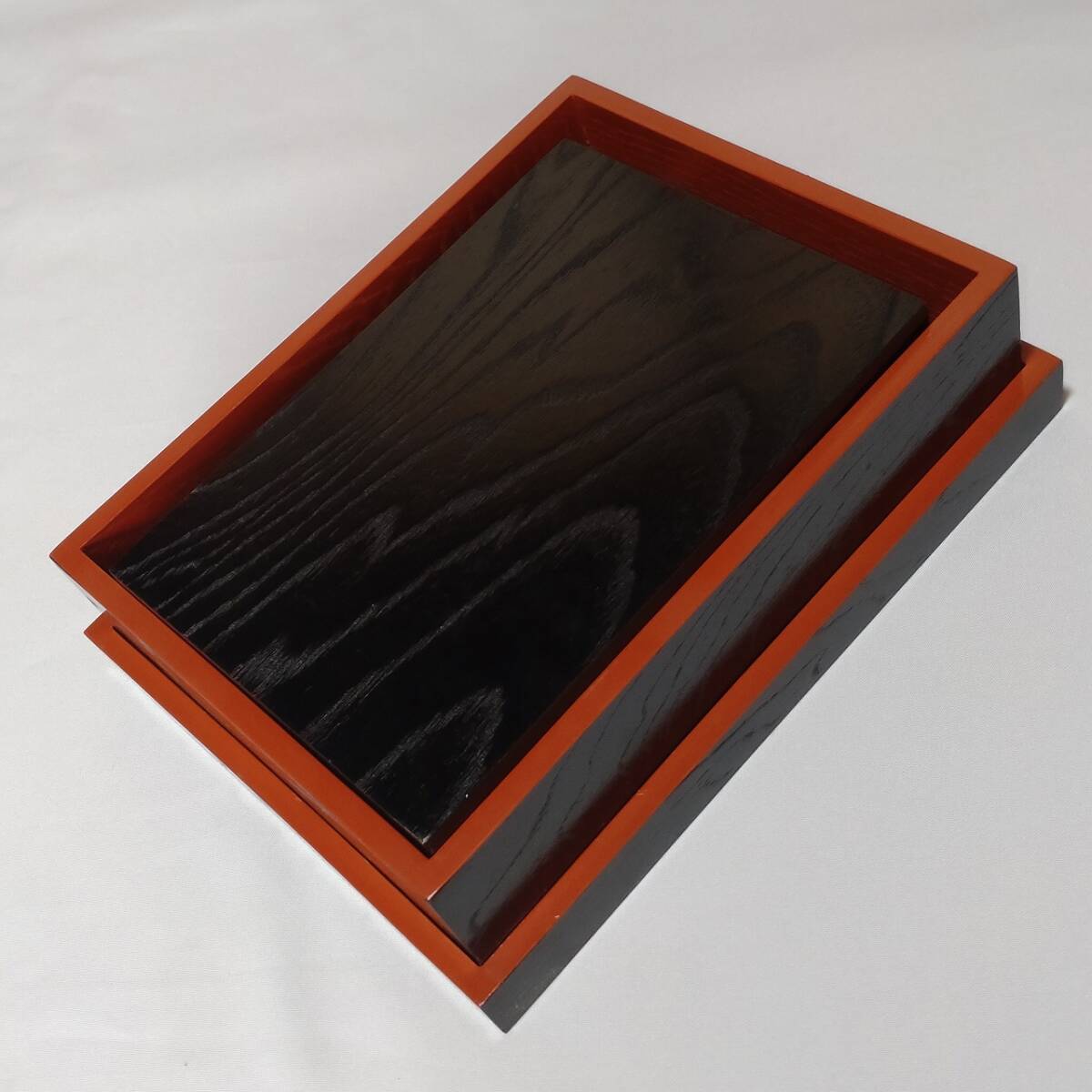 - 重ね塗り箱 木箱 2箱セット 漆器 小物入れ 文箱 大:約300×230×85㎜ 小:235×165×80㎜ 【3573】