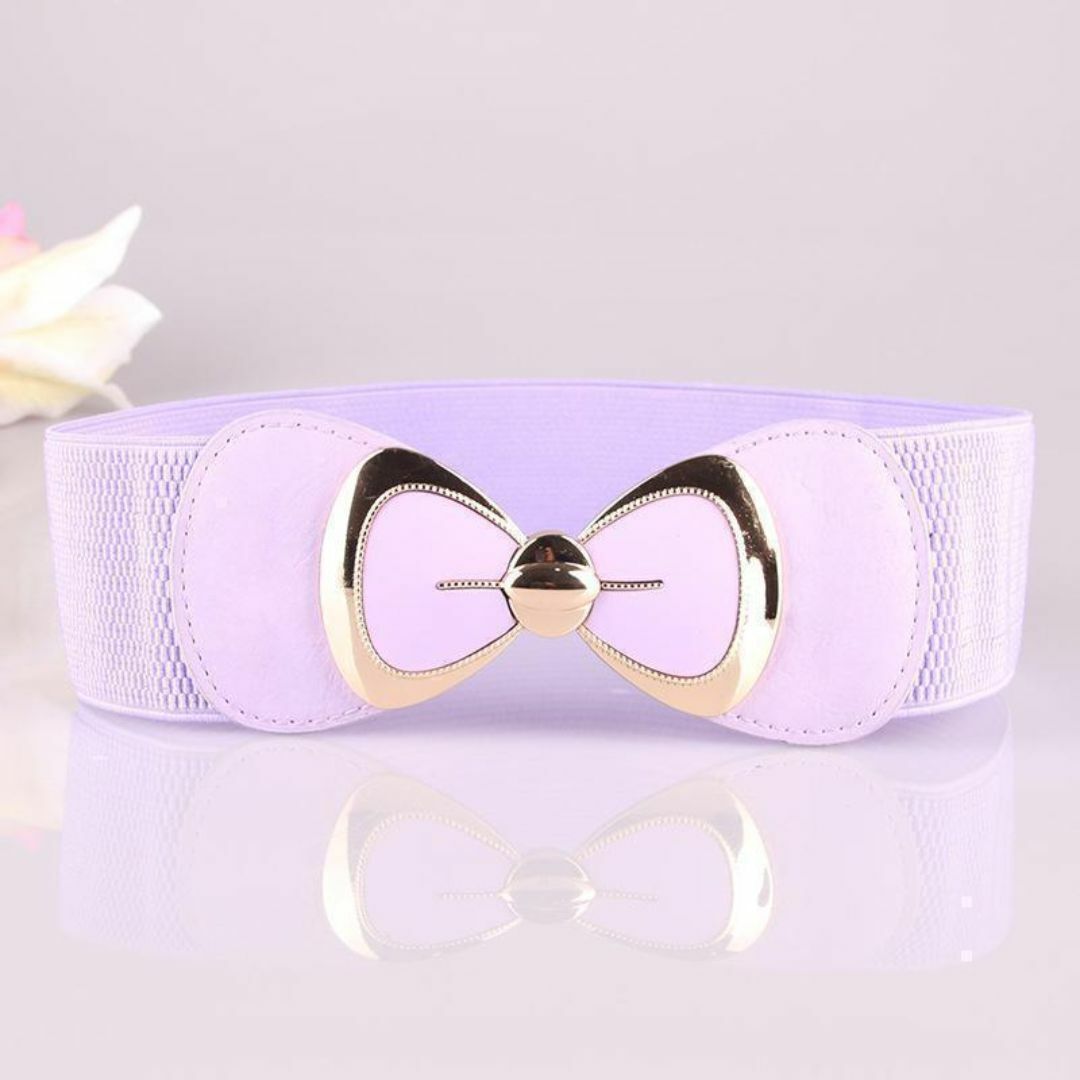 - 【翌日発送】★パープル★金リボンバックル 幅広ゴムベルト レディースベルト