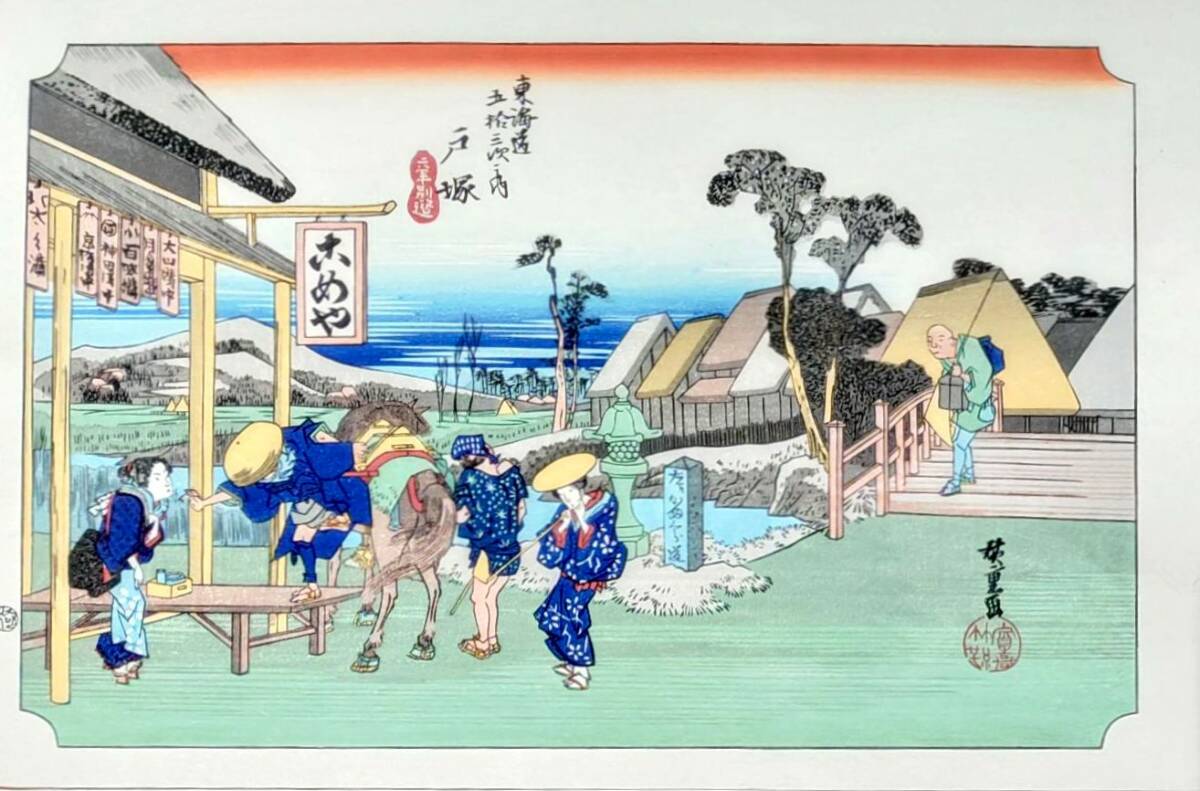 - f24120106〇手摺彩色木版画 東海道五十三次 戸塚宿 保永堂版 悠々洞版 広重 複刻昭和年代 状態摺共特上〇和本古書古文書