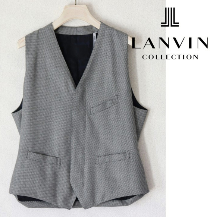 > 33,000円新品【ランバン コレクション】高級ライン 毛100% ベスト ジレ 48(L) 裏地がオシャレ! 3Pスーツにも・・v5779