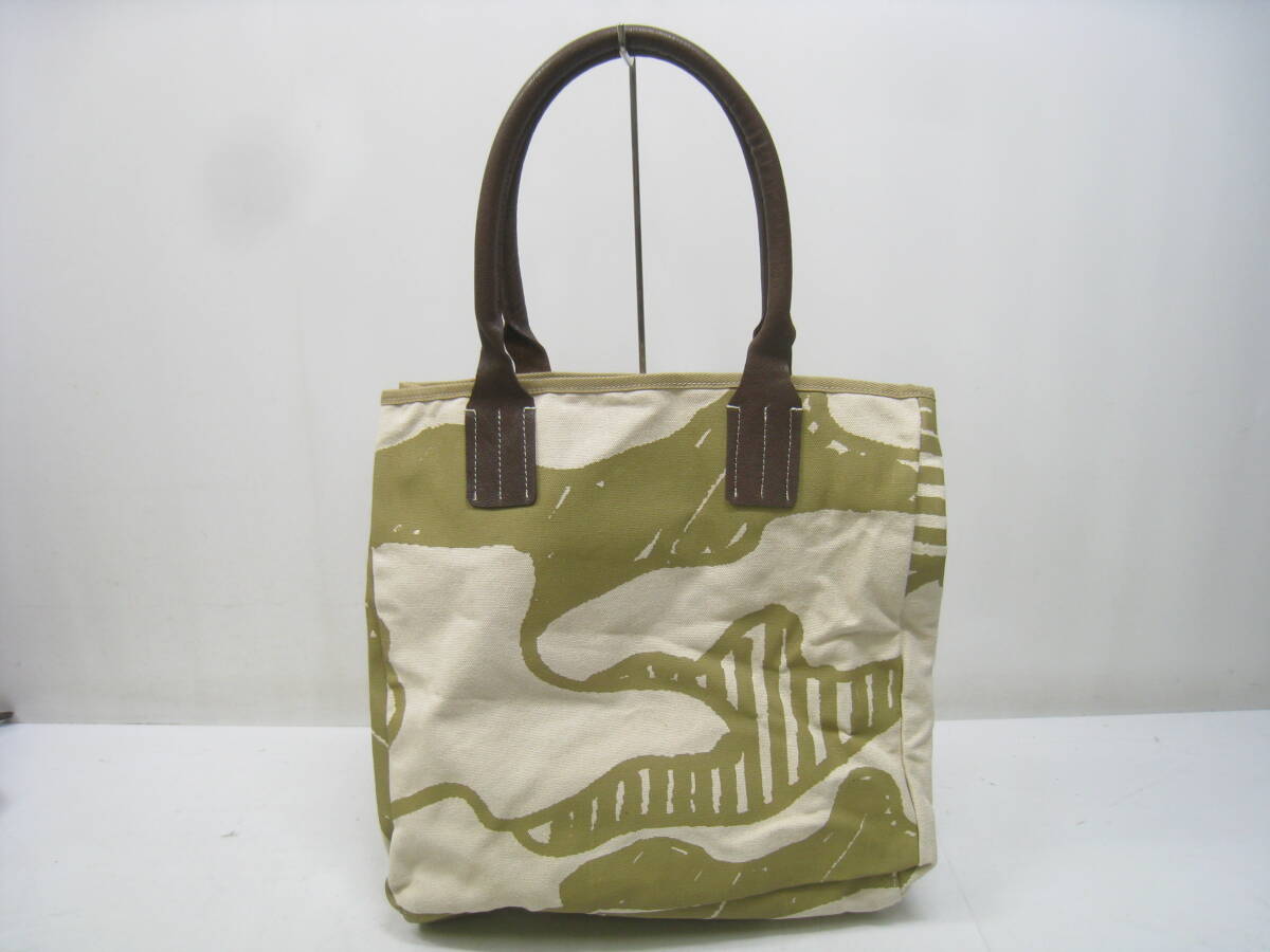 - W.L.C オンワード樫山 トートバッグ キャンバス 総柄 白×カーキ ホワイト