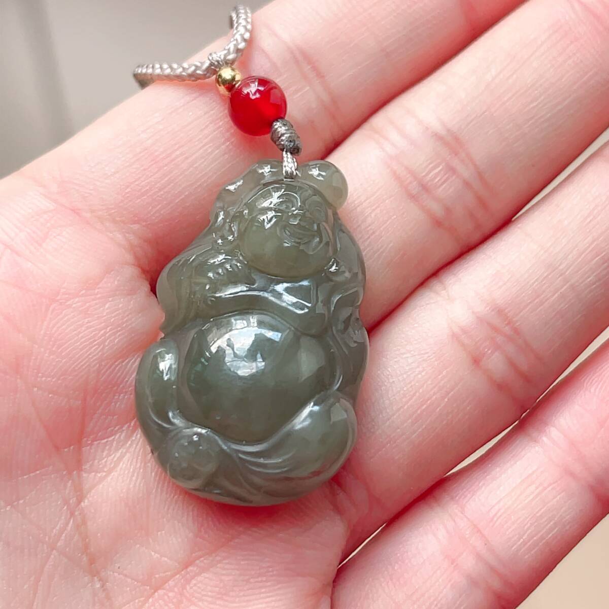 - ◇和田玉+赤瑪瑙1粒◇ヒスイ◇ネックレス◇ペンダント◇弥勒形 彫刻◇お守り◇天然石◇パワーストーン◇巾着袋付き◇プレゼントにも