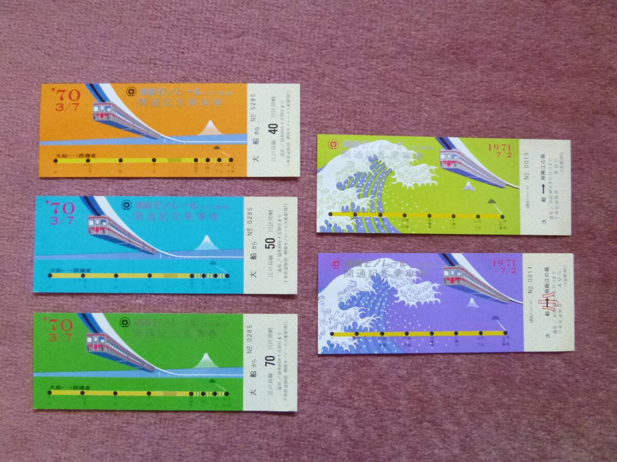 - 湘南モノレール開通[江ノ島線]記念乗車券区間違い5枚組(懸垂式モノレール/三菱サフェージュ式/大船⇔西鎌倉⇔江ノ島/昭和45年~46年発行)