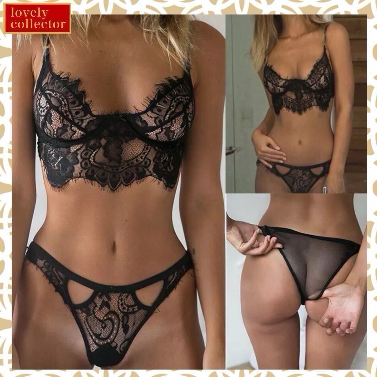 - レース セクシーランジェリー 下着セット ブラ&ショーツ ブラック L シースルー コスプレ衣装 過激 上下セット ベビードール