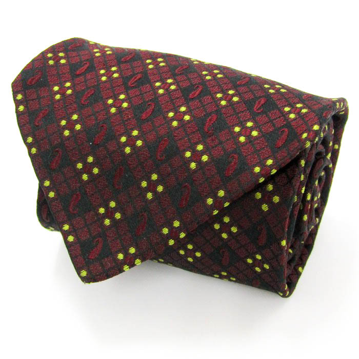 - ニナリッチ ブランド ネクタイ ペイズリー チェック柄 ドット 小紋柄 シルク フランス製 PO メンズ ワインレッド NINA RICCI