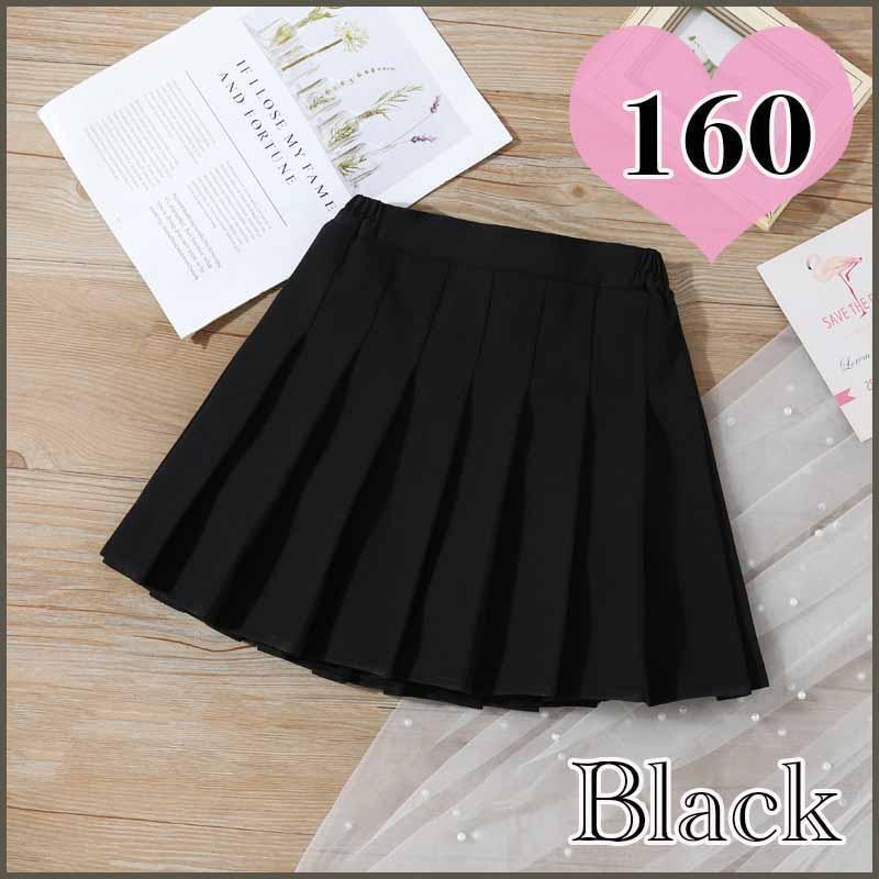 - スカート ミニスカ プリーツ 160 新品 キッズ 子ども 韓国 ブラック 制服 ダンス 衣装 発表会 黒 かわいい 結婚式 フォーマル 喪服