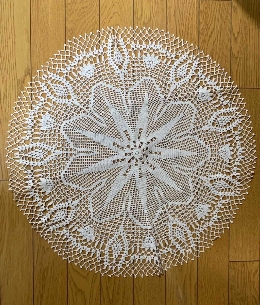 - 送料込 ドイリー パイナップル レース編み 57㎝ 円形 テーブルセンター 植物 花 白 ハンドメイド レトロ アンティーク