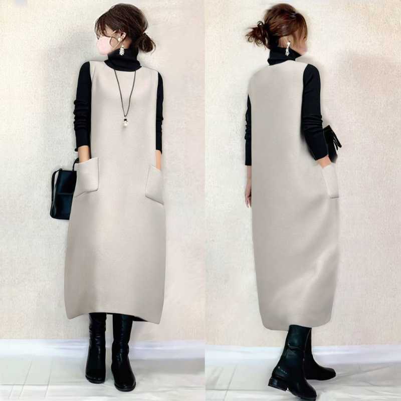 - 新入荷秋ワンピース レディース ノースリーブ ジャンパースカート 大きいサイズ 着痩せ 大人 ロングワンピース 通学 通勤S-Lサイズ選択可