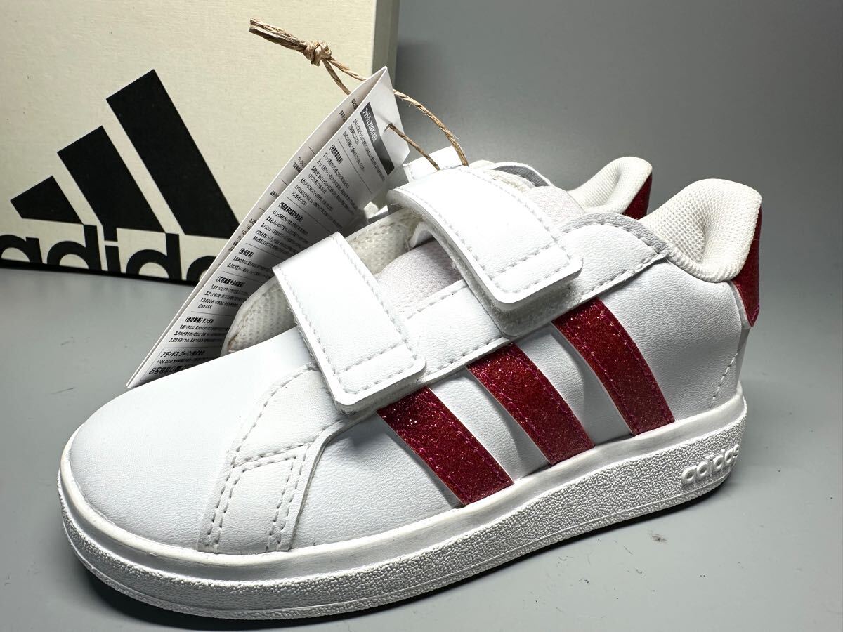 - 【即決】 ★箱付新品★ adidas アディダス 15cm ピンク ラメ 子供 キッズ スニーカー 靴 オシャレ 白