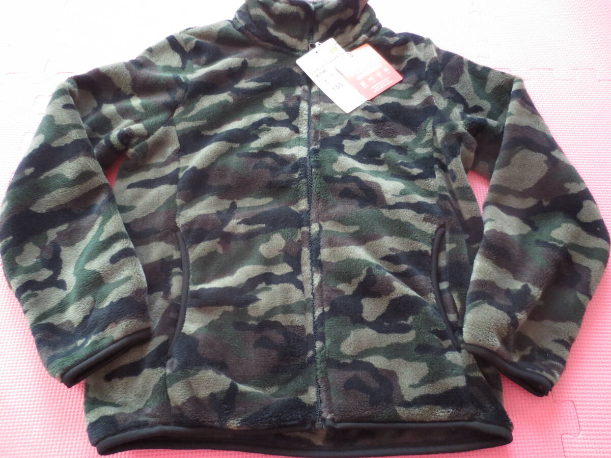 > 新品 150 フリース ジップアップジャケット 迷彩柄 フリースジャンパー 緑 カモフラージュ柄 男の子 冬物 防寒 長袖 上着 140cm~ 送料無料
