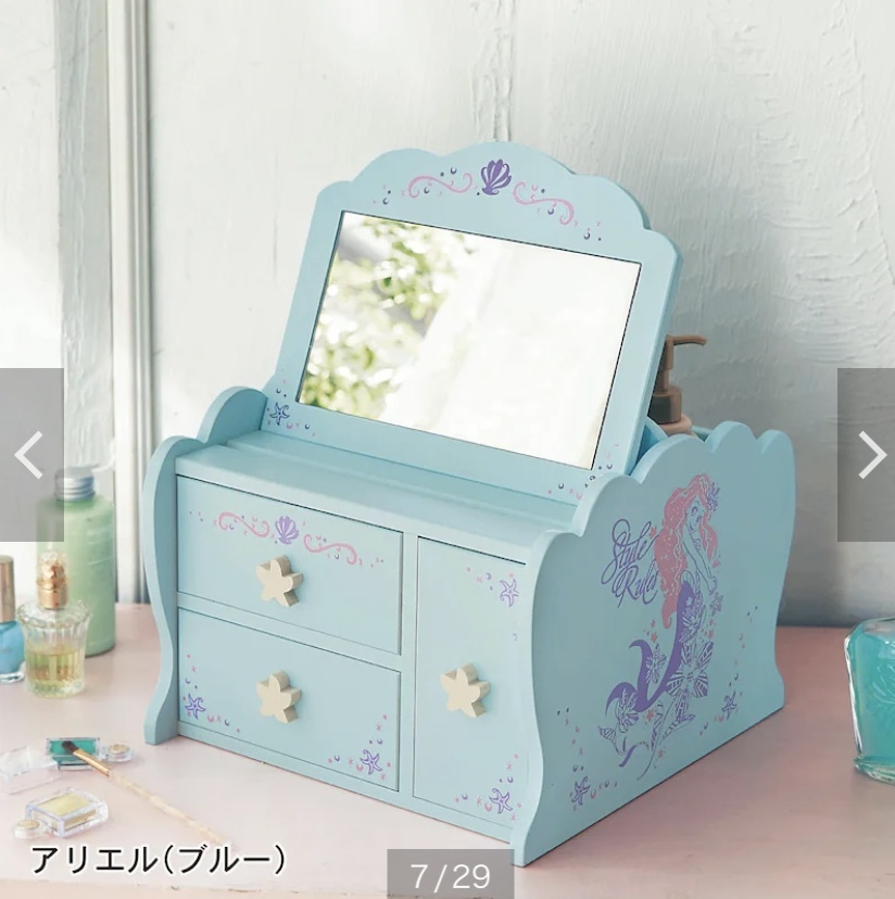 - ベルメゾン★千趣会★ディズニー★プリンセス★リトルマーメイド★アリエル★収納できるミラー付きメイクボックス★小物入れ★ブルー