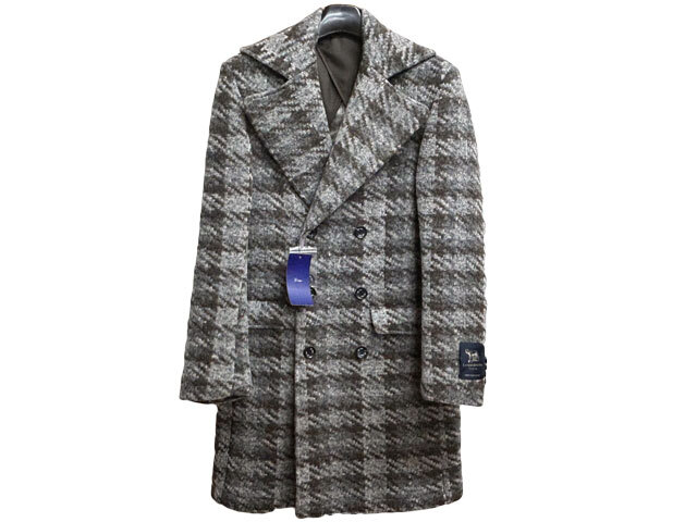 > 【送料無料】未使用新品210803-007【58850円】L(48) 茶チェック G-stage/ジーステージ チェスターコート ダブル ビッグガン クラブチェック