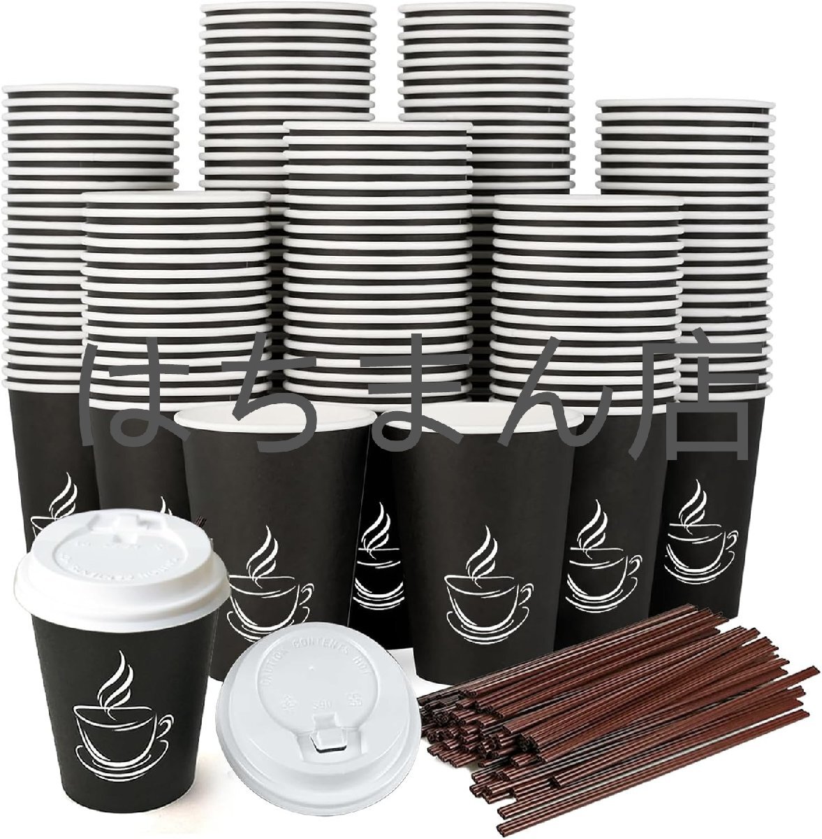 - 紙コップ 使い捨て 蓋付き 300個入セット 撹拌可能ストロー付き 業務用 コーヒー カップ お茶カップ ペーパーカップ 400ML white