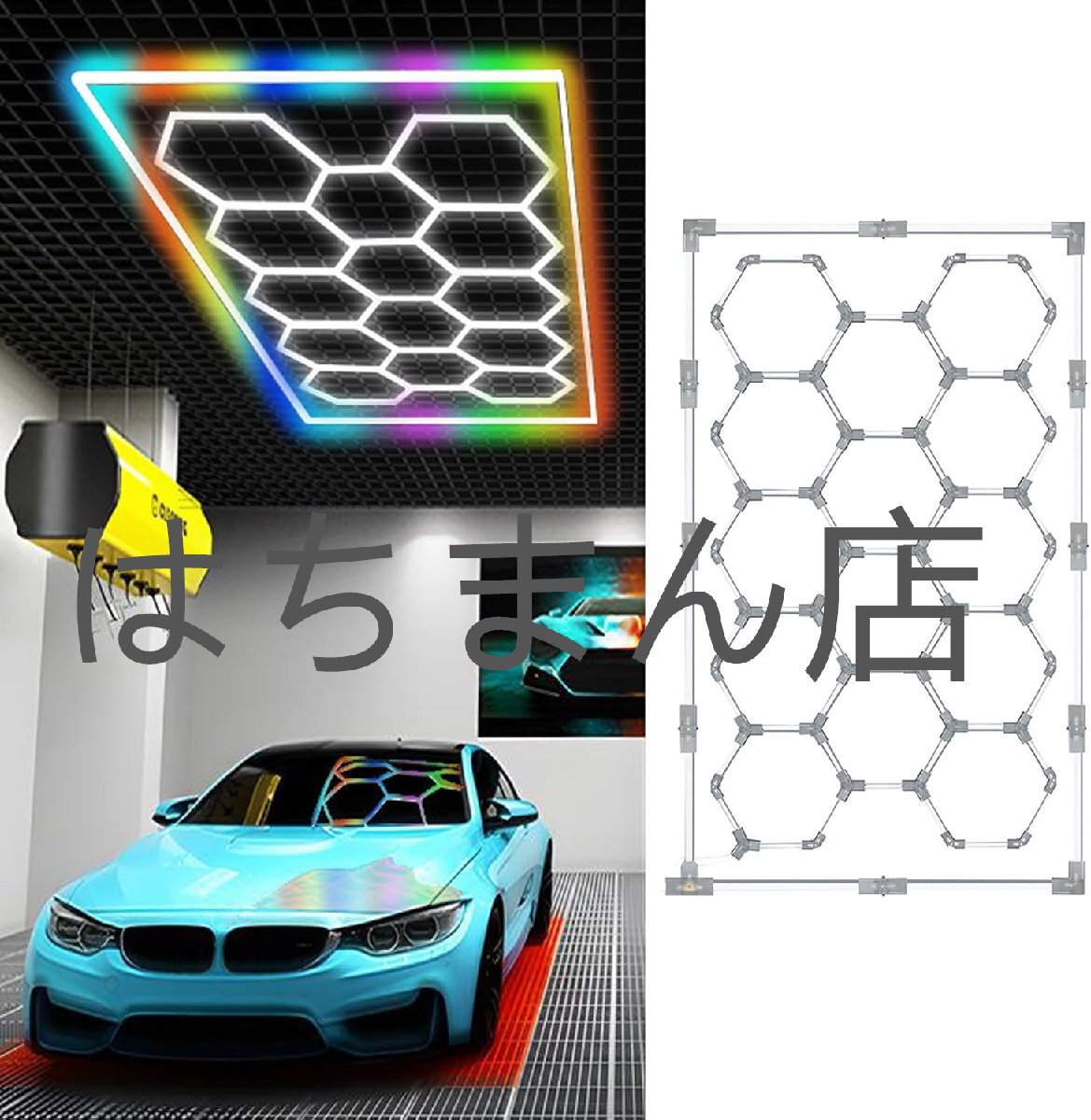 - ガレージライト カラフルLED 洗車室 天井用 110V ハニカムライト 3000-6500K 高輝度 DIYセット 白/暖かい光 六角形 照明 カーポート 多彩な