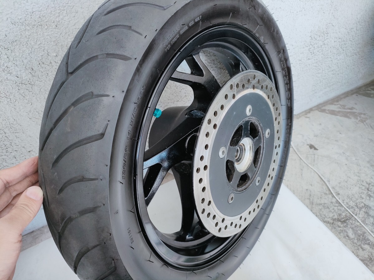 > 美品 バリ山タイヤ付 ディスク付 120/80-14 120/80R14スズキ スカイウェイブ250 CJ44A CJ45A CJ46Aスカイウエイブ SUZUKI SKYWAVE ブラック