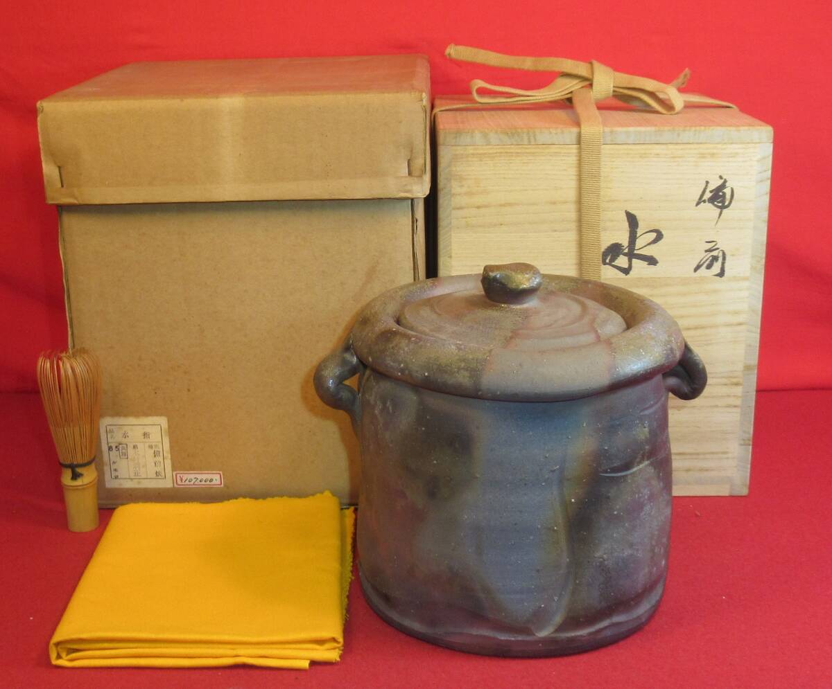 > 茶道具『備前焼 双耳水指 在銘「り」木村利正作 定価107,000円 共箱共布内』窯変水指 焼き締め 茶事 七事式 表千家 裏千家十職 茶会席