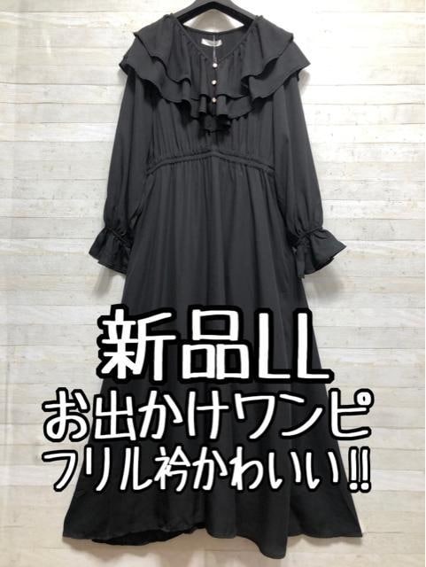 - 新品☆LL黒系♪ビッグカラー&ラッフルフリルフェミニンワンピース〇B484