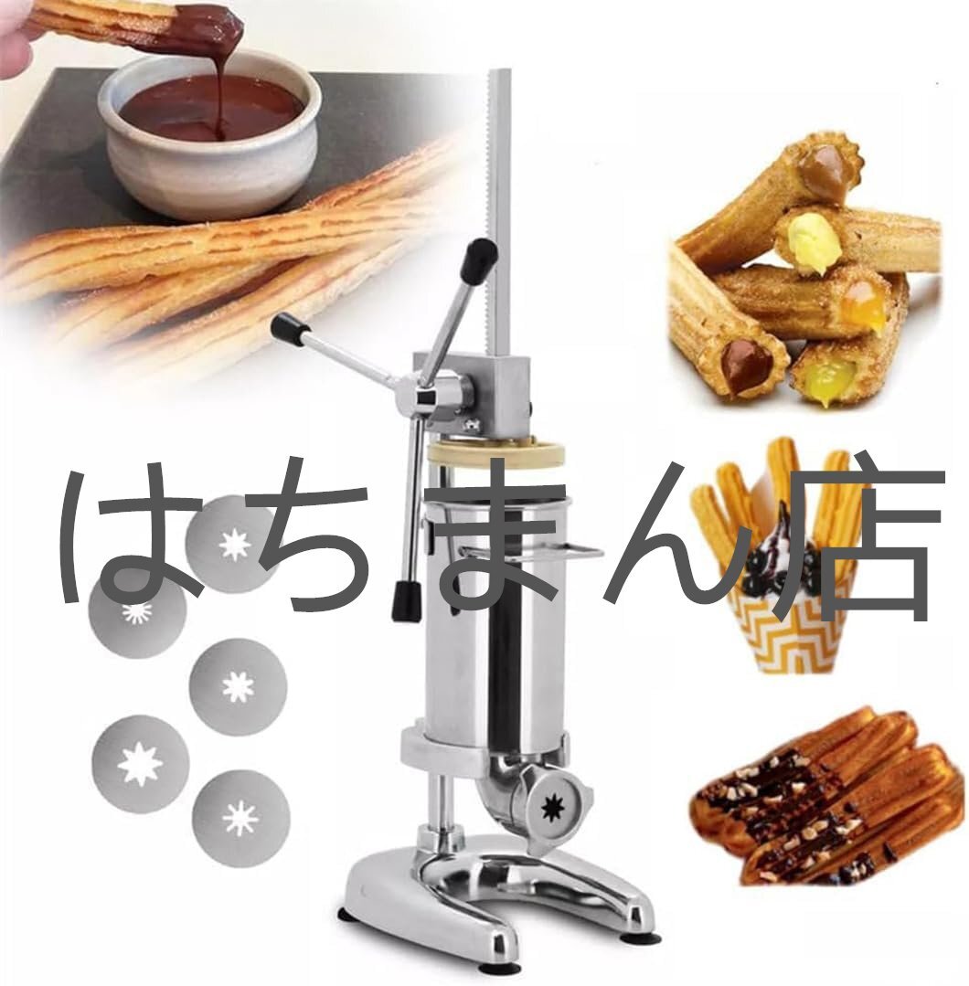 - 業務用チュロスメーカー、 手動スペインドーナツメーカーマシン 5 つの型付き、ステンレス鋼垂直スペインチュロス充填機スナック機器 2L