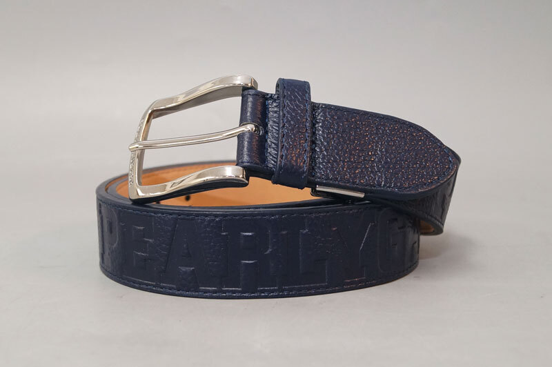 > yf08-PEARLY GATESパーリーゲイツ ベルト ネイビー レザー ロゴ柄 スクエアバックル ゴルフ 革小物