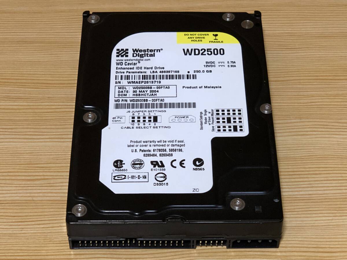 - 正常 Western Digital ウエスタンデジタル ハードディスク WD2500BB-00FTA0 250GB HDD 3.5インチ IDE パソコン部品 PCパーツ 研究 自作用も