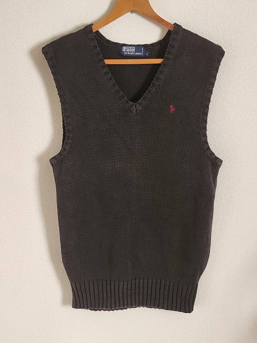 > 90s00sPoloRalphLaurenラルフローレンコットンニットベスト黒ブラックフェードオールドビンテージ