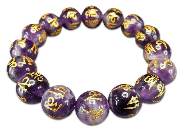 - ファントムアメジスト六字真言金彫り約14mm天然石ブレスレット数珠プライム