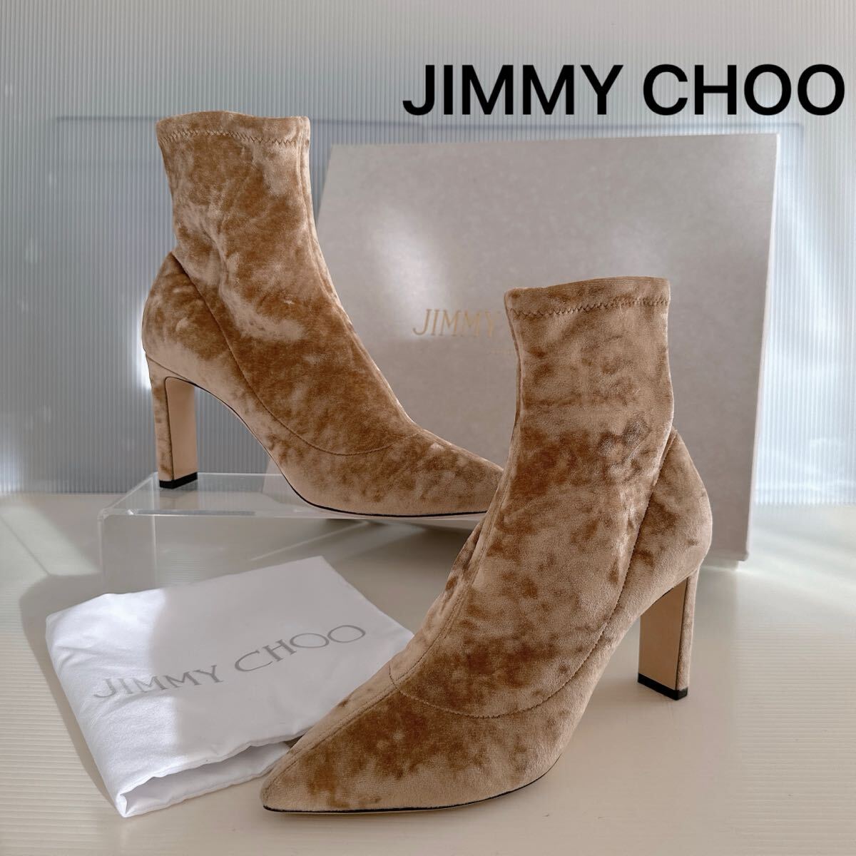 > JIMMY CHOO ジミーチュウ ショートブーツ ブーティ アンクルブーツ ハイヒール ポインテッドトゥ ベルベット 極美品 正規品 靴