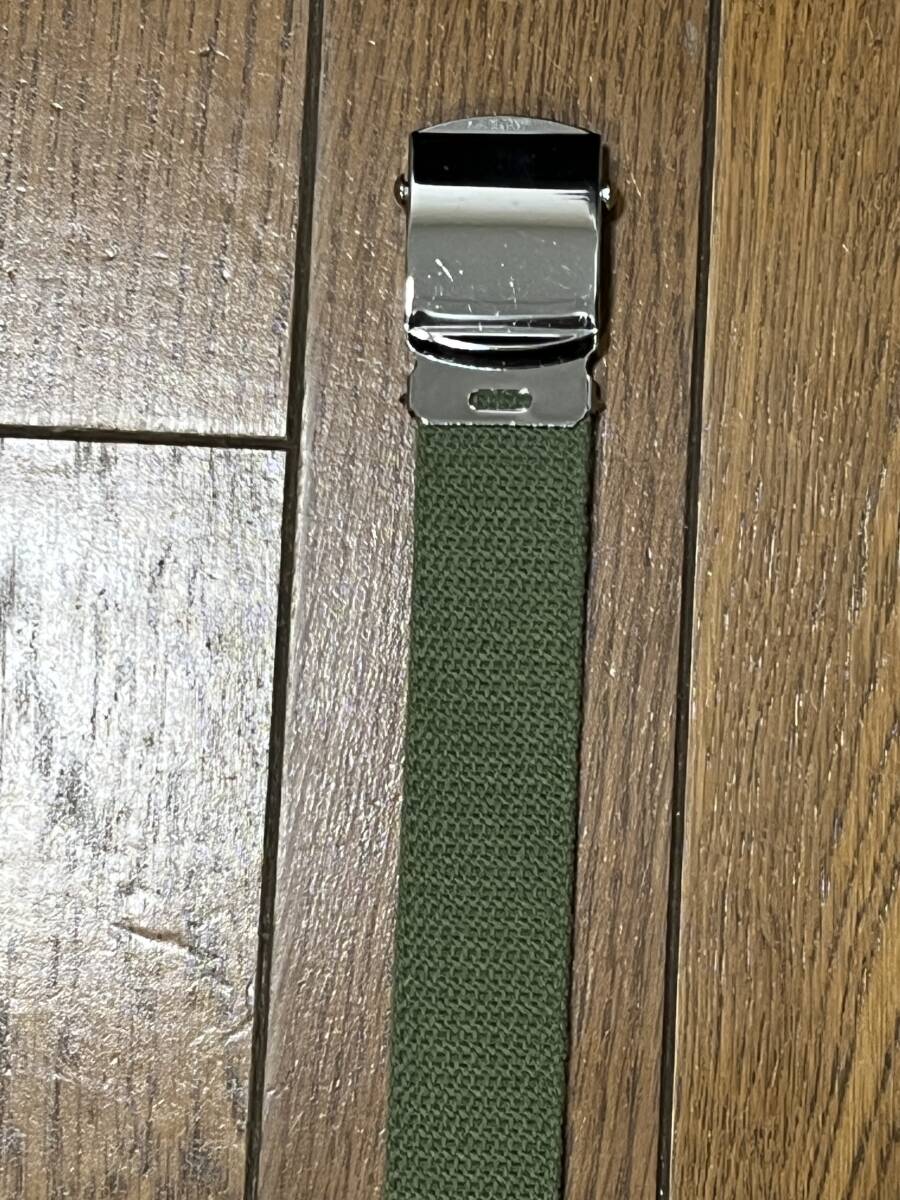 - 【質屋 尾張屋商店 東京】 (4776)未使用 GIベルト キャンバス グリーン スライドバックル スレ傷