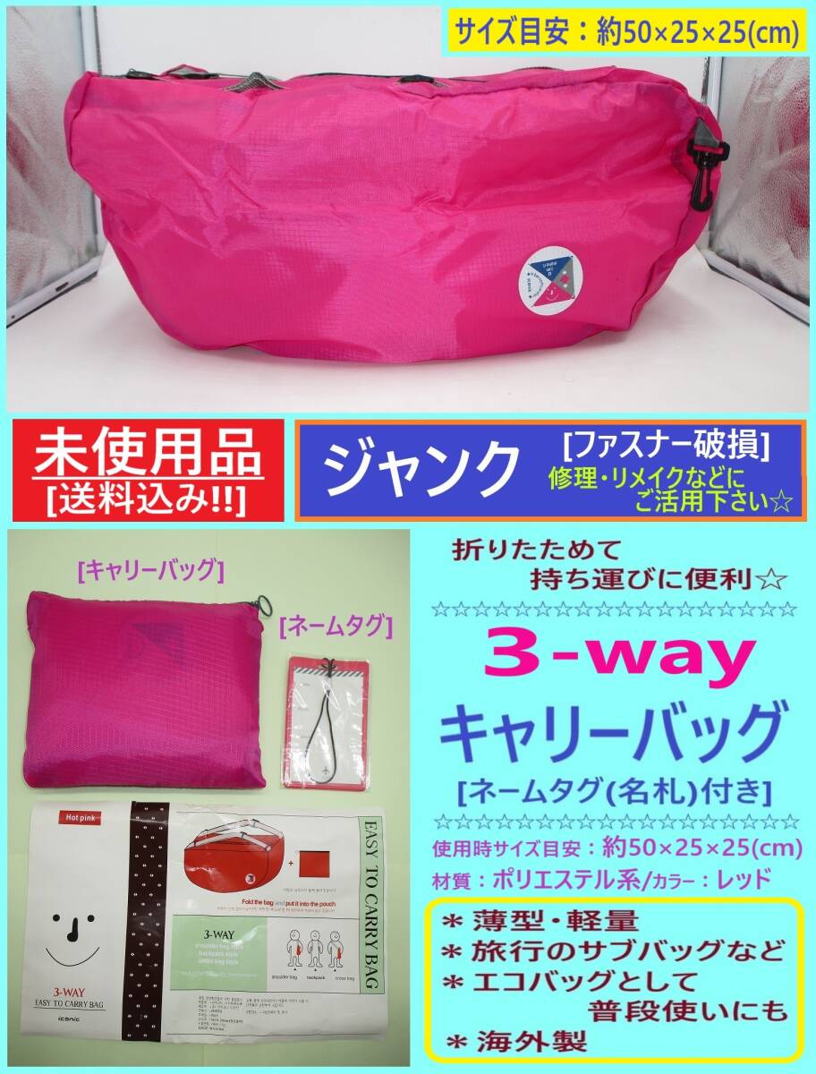 - ジャンク ファスナー 破損 未使用 携帯 3way キャリー バッグ ネームタグ付き レッド 長期保存 赤 折りたたみ 大きい 修理 リメイク 海外製