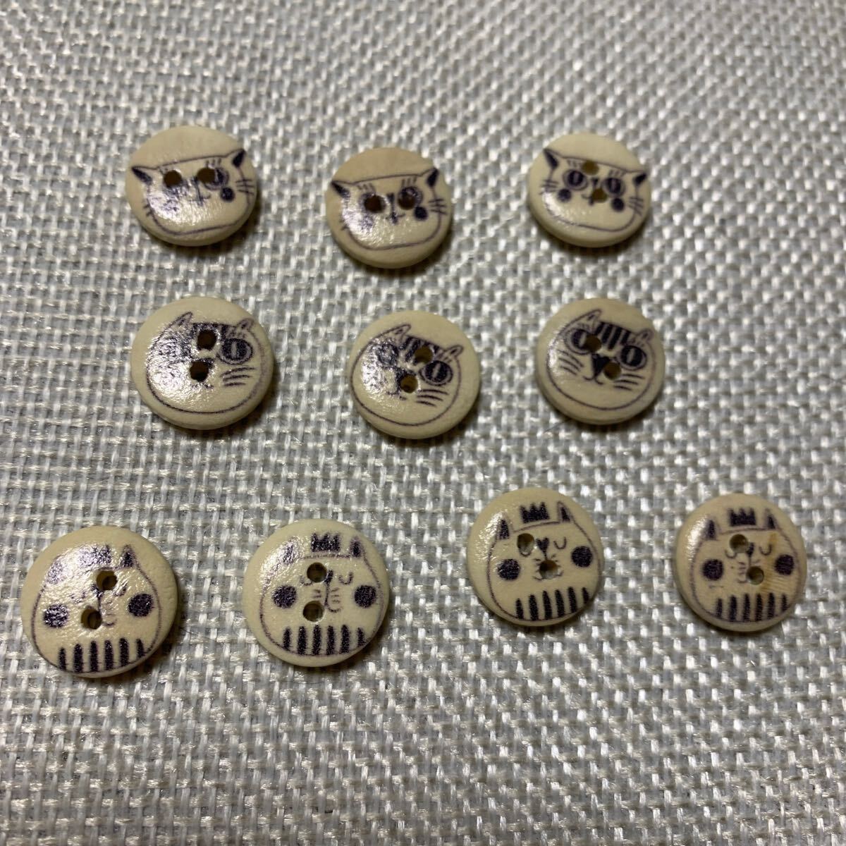 - 猫の木製ボタン 1.5㎝ ハンドメイド 10個セットe