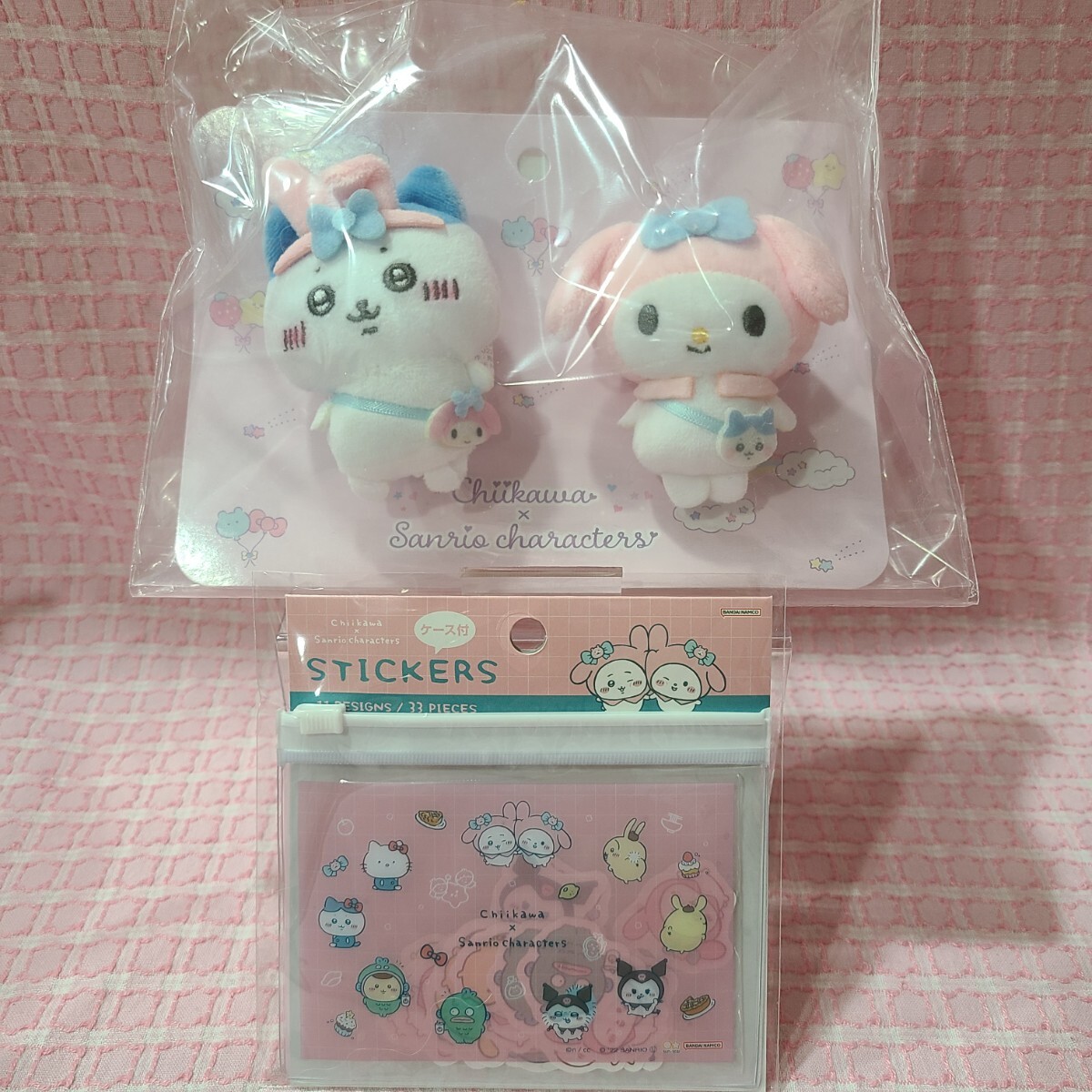 - 【サンリオ】マイメロ ちいかわ ハチワレ マスコット ブローチ ぬいぐるみ ケース付きシールセット ナガノフレンズ シナモロール R612