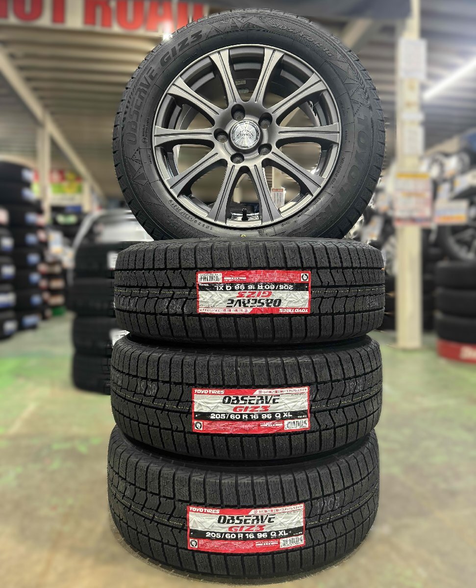 > ☆60,70,80ノア・ヴォクシー etc.[新品スタッドレス] トーヨー オブザーブ GIZ3 205/60R16 + [中古] 社外 16インチホイール 4本セット