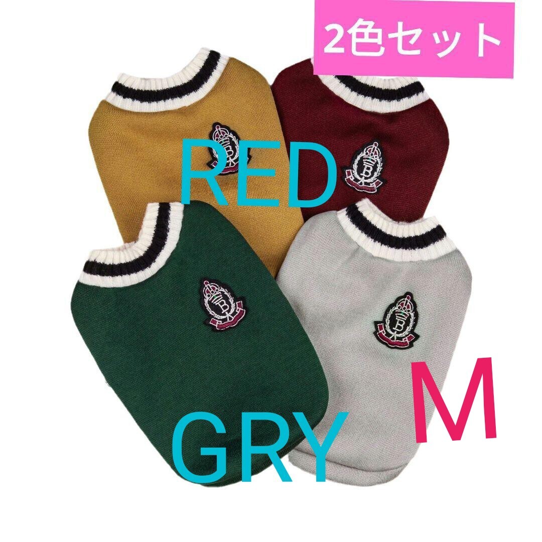 - M レッドとグレー 犬服 2色セットイングリッシュセーター裏起毛であたたかいペット服
