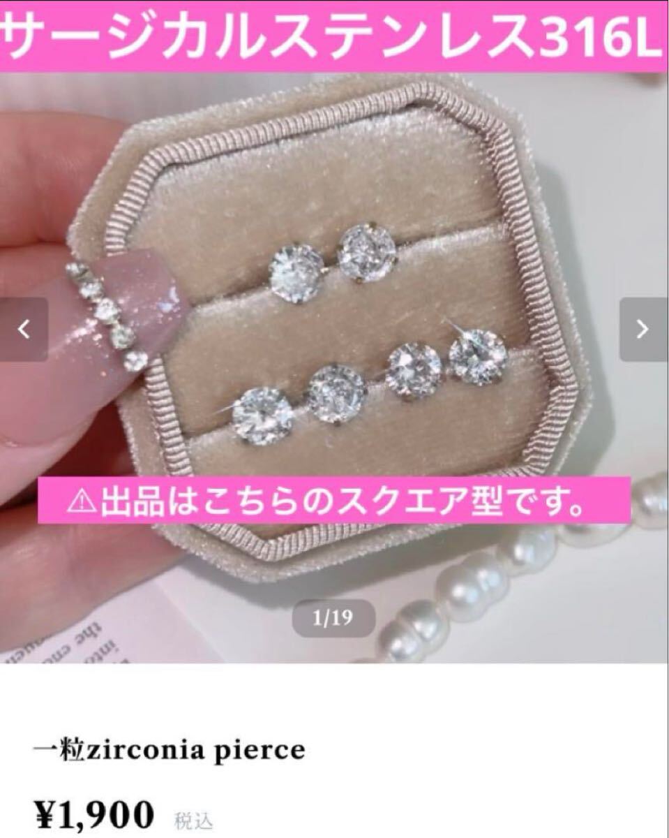 - 一粒 ジルコニア スクエア ピアス シルバー サージカルステンレス316L