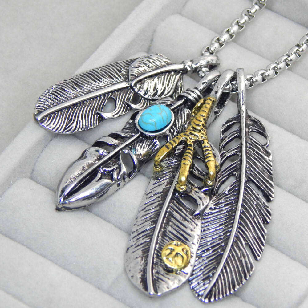 - 新品★送料無料 厳選 極希少 ネックレス 必見 オススメ フェザーネックレス イーグル デザイン メンズ 4連フェザー アクセサリー 限定