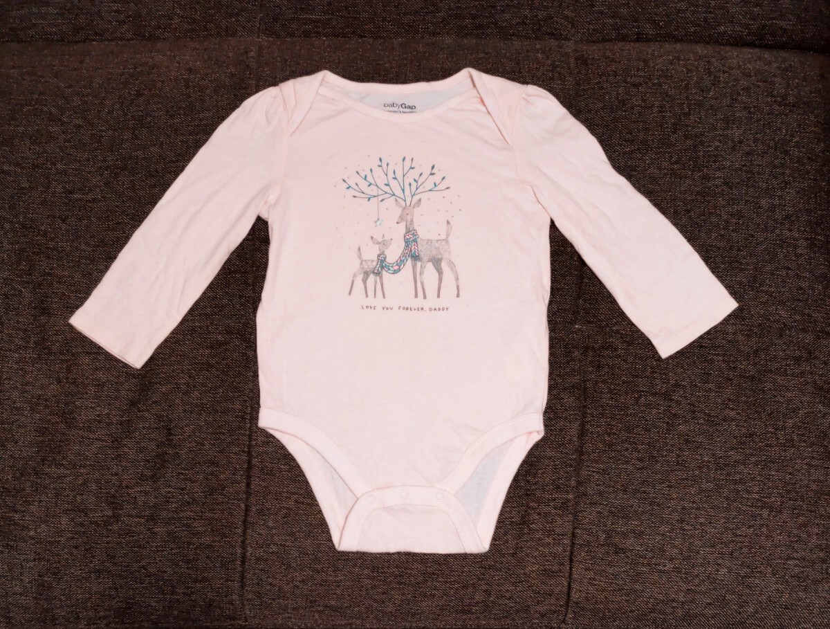 - 美品☆ Baby Gap ボディスーツ 長袖ロンパース シカの親子 ピンク 90