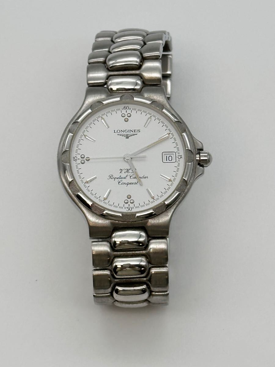 - Y12044 LONGINES ロンジン コンクエスト L1.627.4 パーペチュアルカレンダー ホワイト文字盤 稼働品