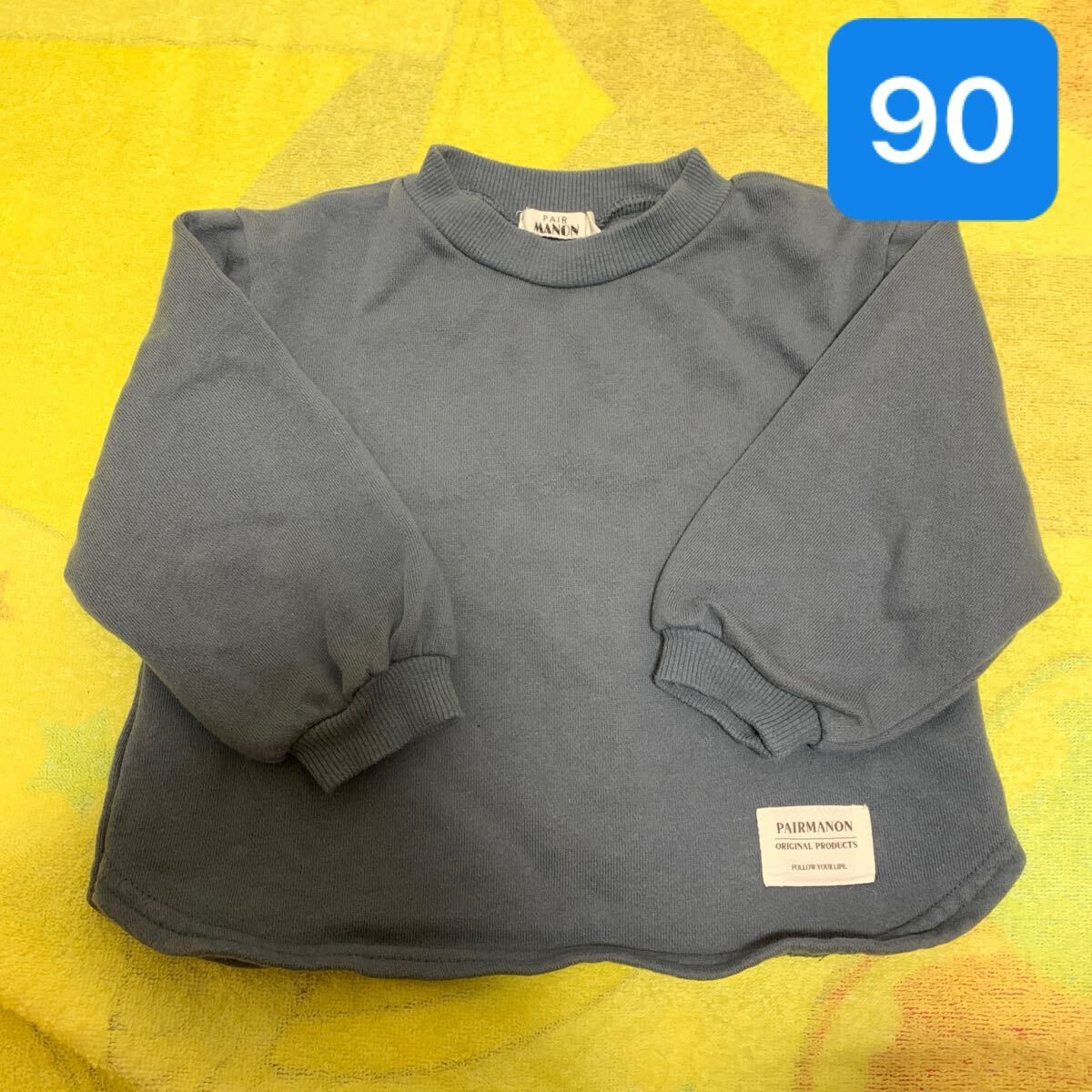 - 裏起毛 くすみブルー ドルマン 長袖 トレーナー 90