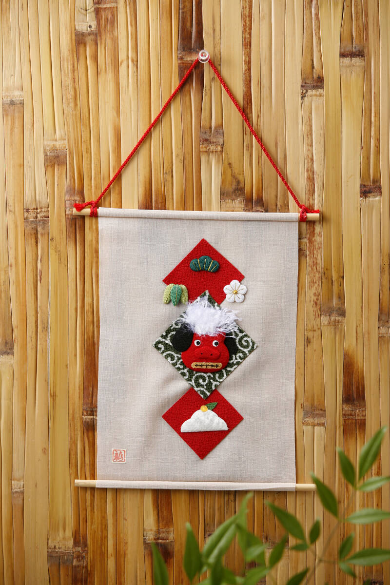 - 正月飾り ミニタペストリー 獅子 ちりめん京都龍虎作 リュウコドウ製品 新品 送料無料