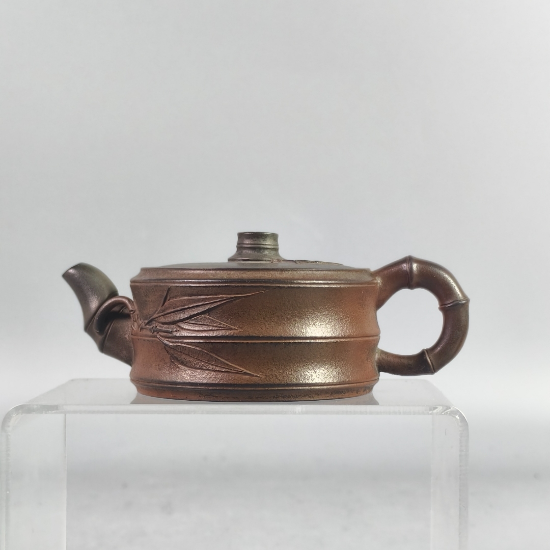 - 茶器 紫砂壷 「常建敏製」 在銘 朱泥「扁竹壺」茶壷常滑 茶壷煎茶器 唐物 時代物 古陶芸 長さ12.5m,高さ5cm LB-9181